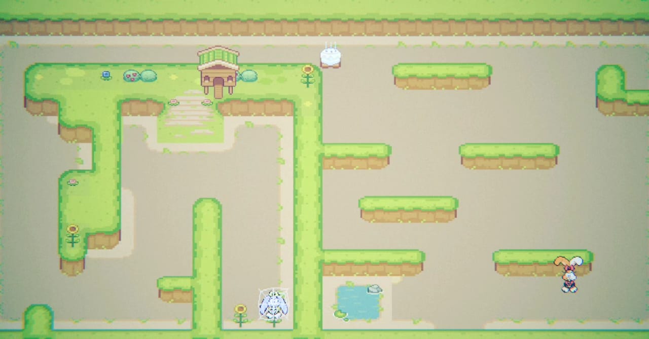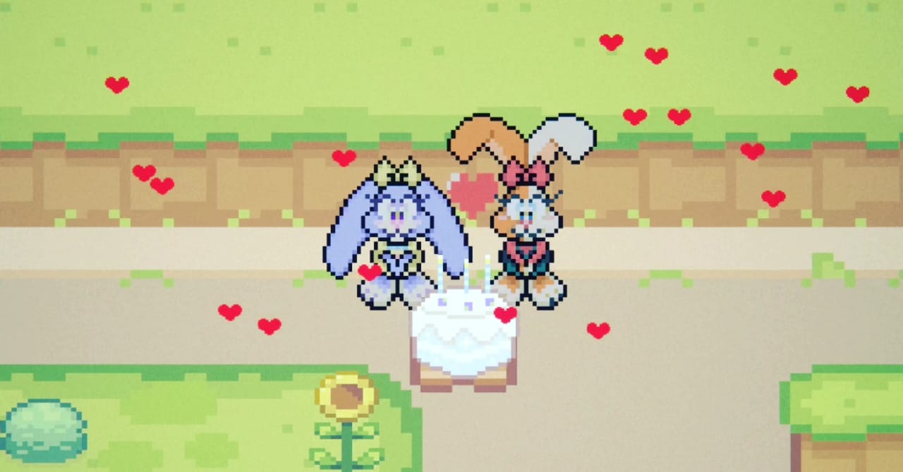 I created this game as a birthday gift for my Gf—it was a labor of love that took nearly a month to complete. The bunny and cake sprites were drawn in ReSprite and exported to Aseprite. For character inspiration, I referenced Babs and Buster from Tiny Toons, also, I used as inspiration Binary-Land NES game and the background assets come from Sproutlands.